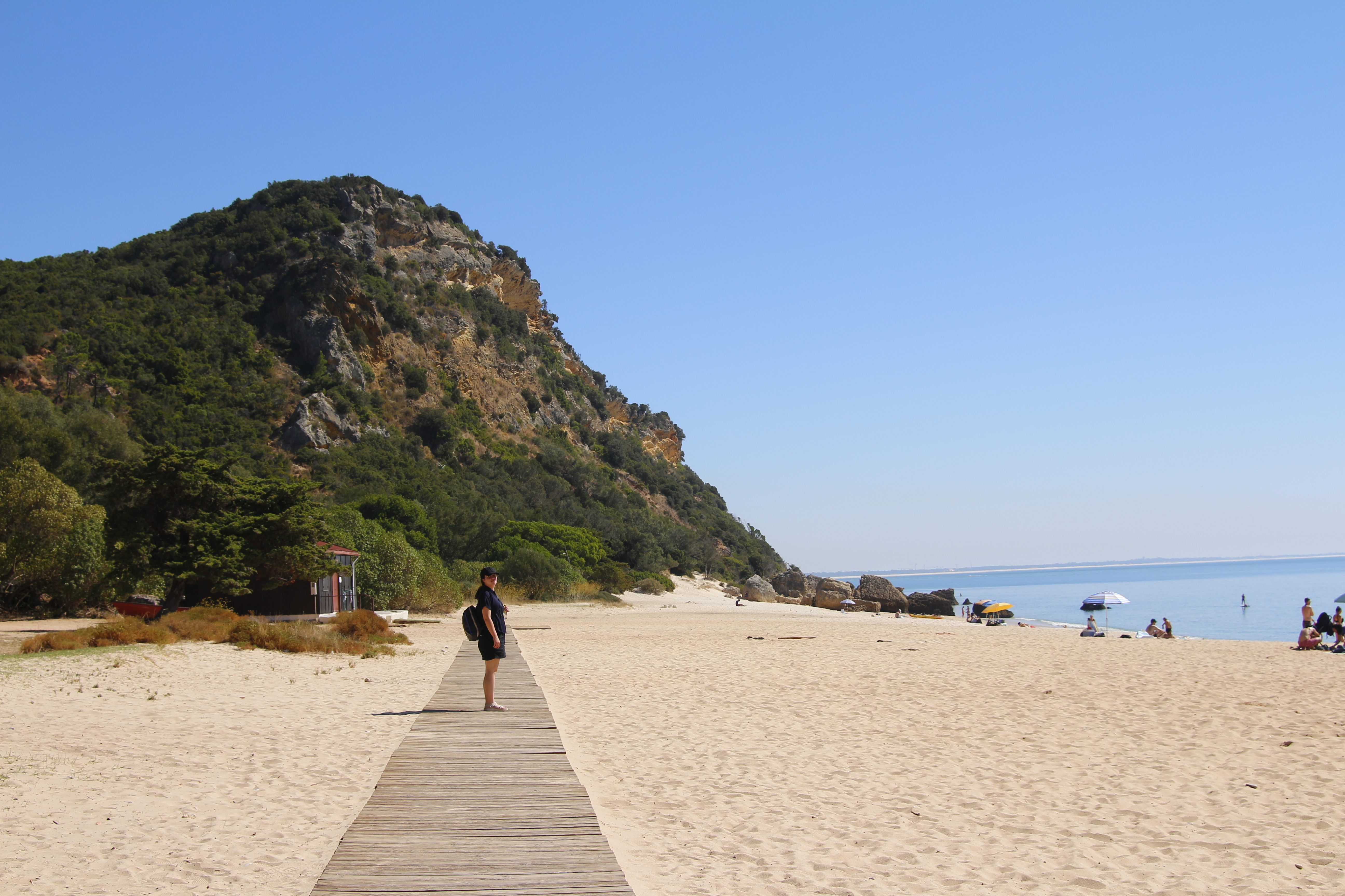Left: Visitors enjoy a sunny day on a beach outside of Lisbon.